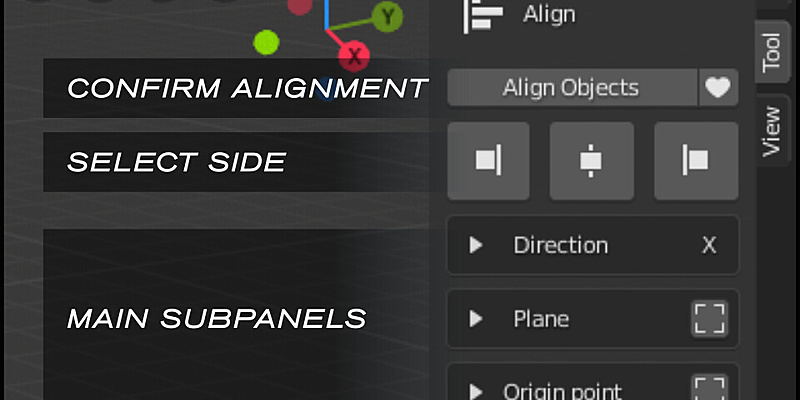 v2.1.1 (Blender 2.82) - Bug fixing- Fixed operators being called from the Active Tool Tab in the Properties Area. Previously, calling operators from this context were ignored. The operator Align Objects produced an error message "3D View not found, cannot run operator", unless called from the buttons in the 3D view. The operator Set Custom Plane was also ignored. Now they work as expected.