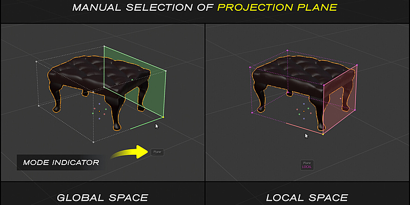 - Get realtime feedback with a dynamic projection plane following your objects and colored with the axis in use