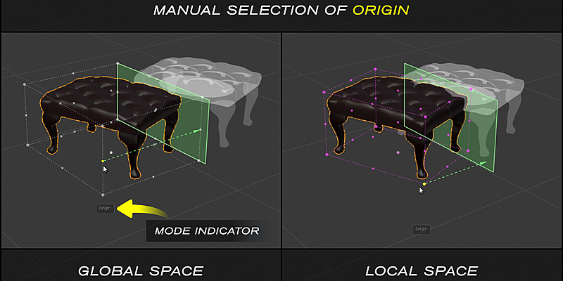 - The geometry of non-mesh objects can now also be used to set the projection plane and origin point based on their bounding boxes. In the past, one had to first convert to mesh.