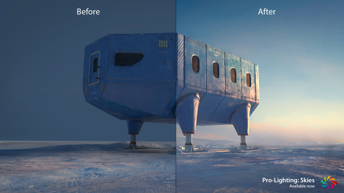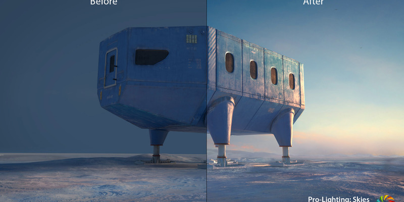 Pro-Lighting: Skies contains a collection of 80 HDR skies that were captured by professional photographers around the world. Includes sunny, cloudy, overcast, morning, sunset, nighttime and evening skies.
