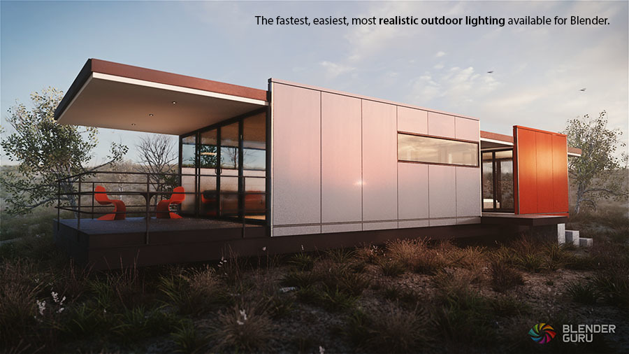 It’s the fastest, easiest and most realistic outdoor lighting available for Blender.