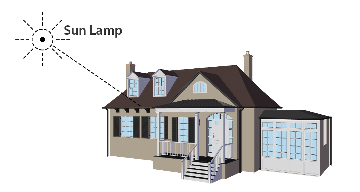 Many schools teach the “sunlamp” method for outdoor lighting.