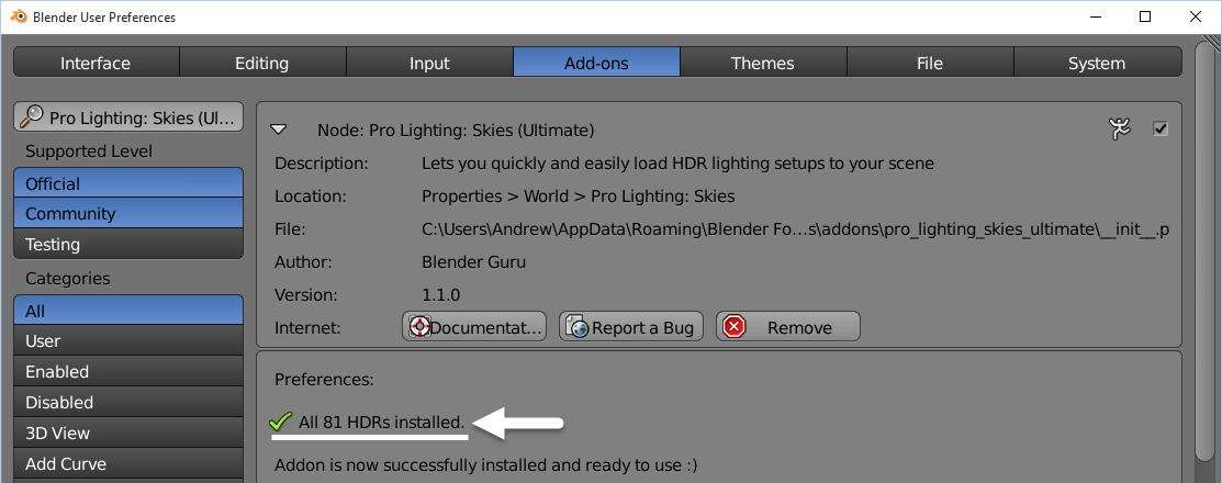 A tick should appear in the Preferences, indicating that the installation of all 94 HDRs are successful.