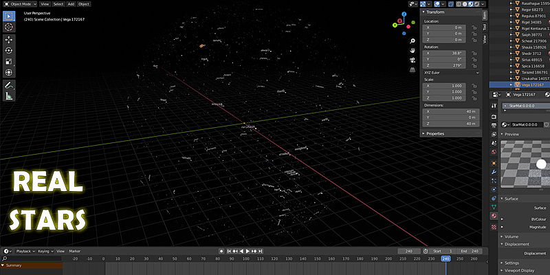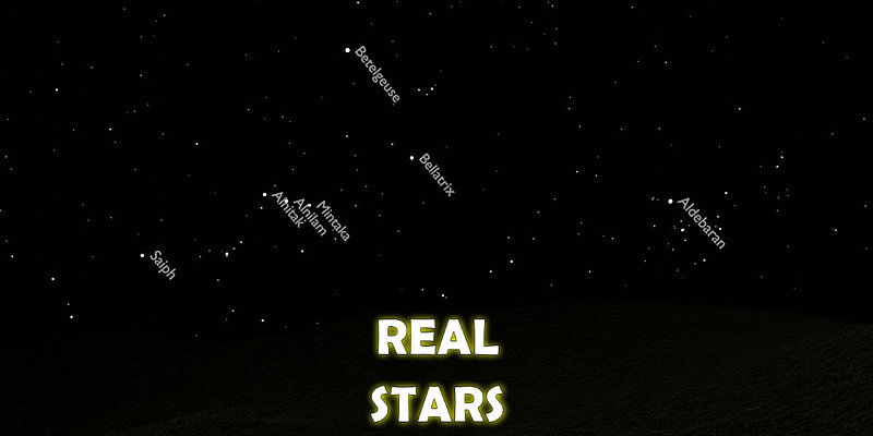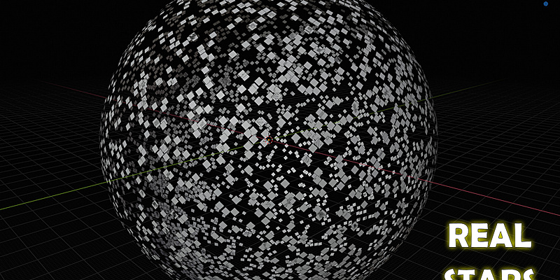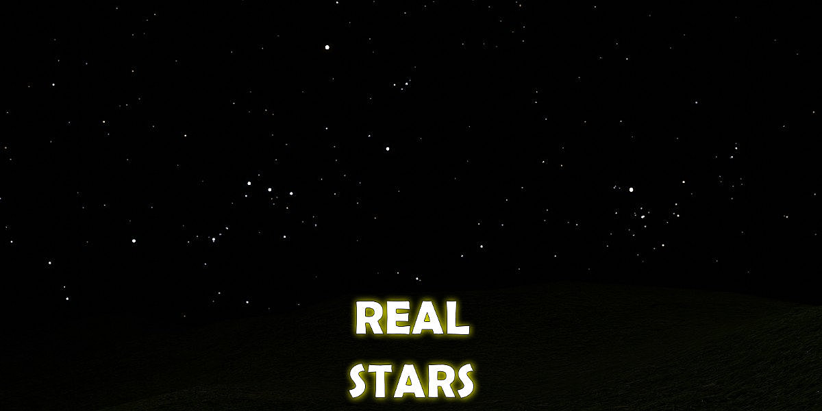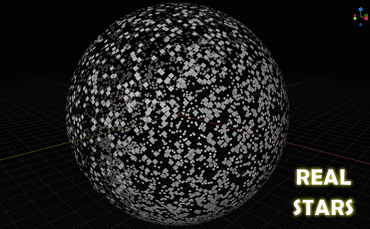 "Real Stars SkyDome" is a .blend file containing the 5044 brightest stars in the real night sky. Each star is a planar quad mesh placed on the surface of an imaginary sphere with a radius of 1000m, hence the name "SkyDome".