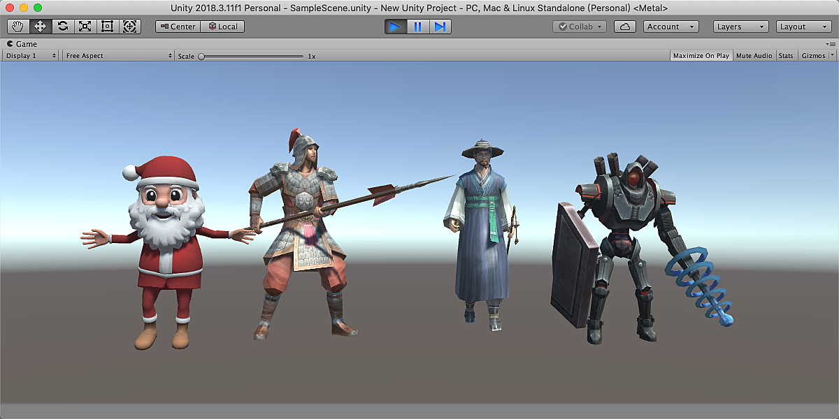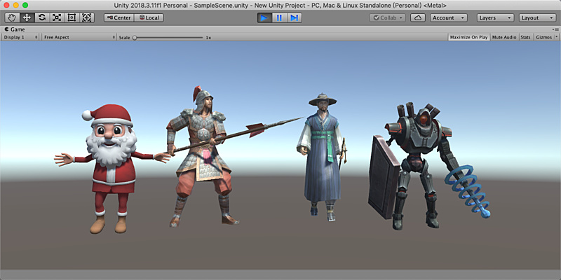 Here are three characters in the Editor of Unity 2018, note that Santa's eyes, mouth and face are driven by shape key animation, and his body is driven by armature deform animation.